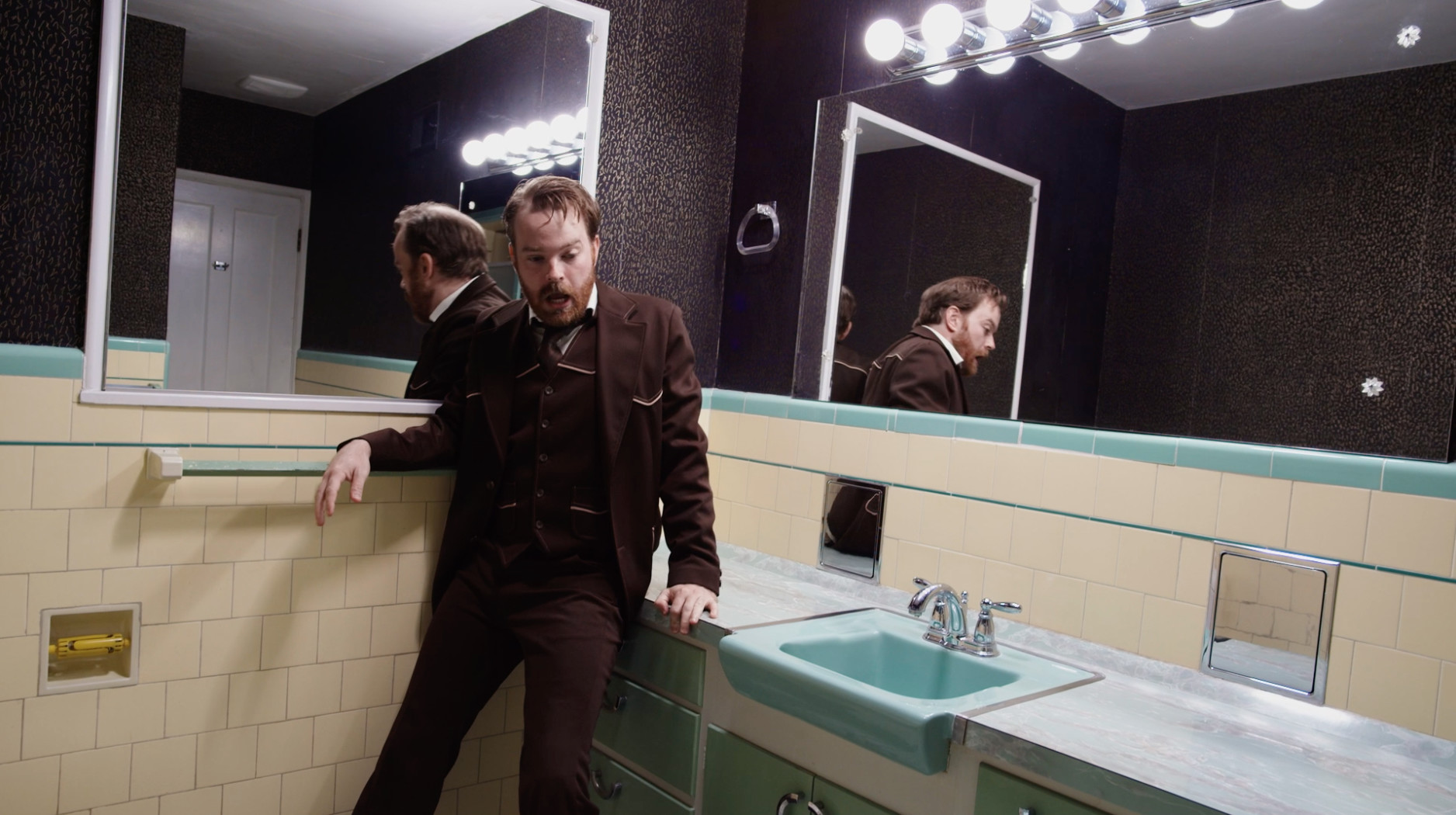 A man wakes up locked in a strange bathroom where something is lurking behind the walls.