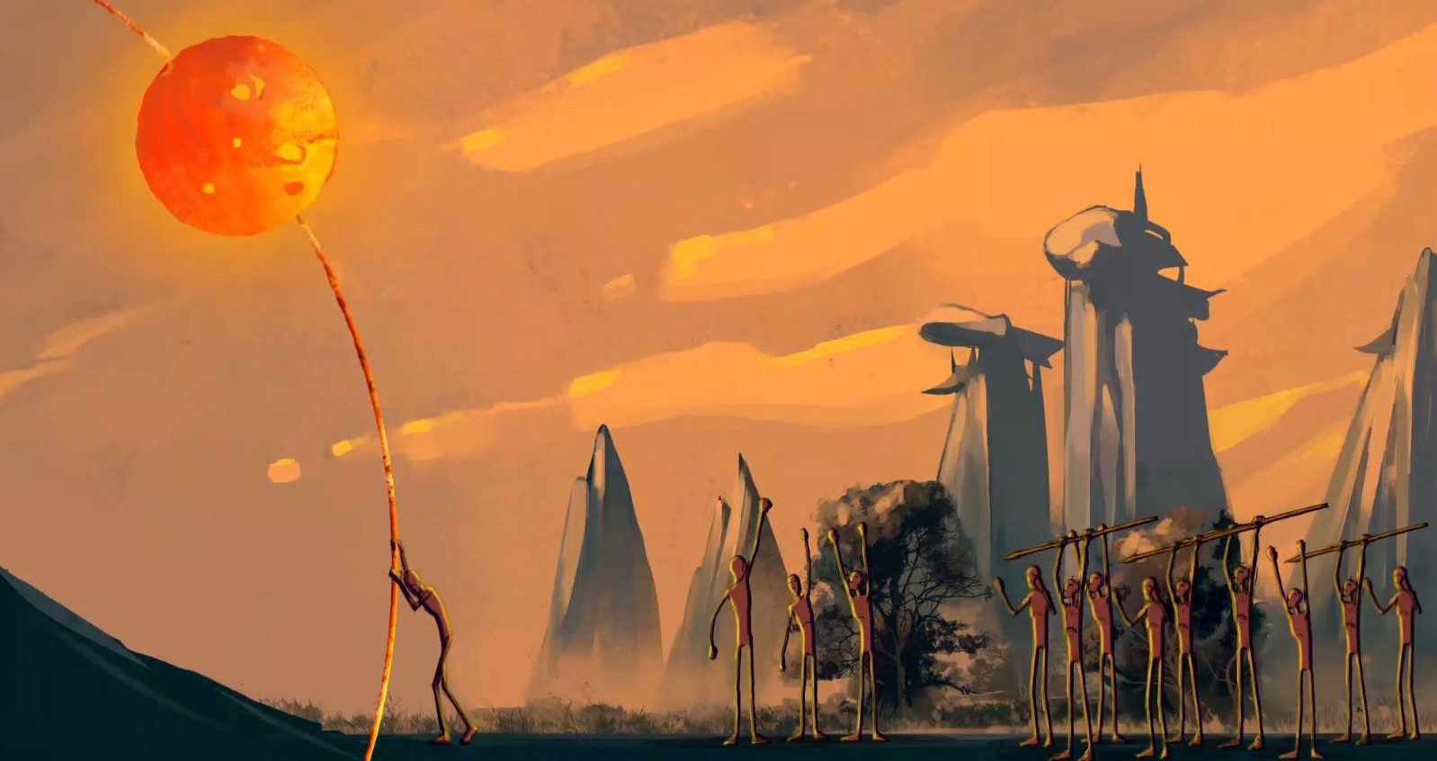There is a war between two tribes on claiming the sun in the sky. As a result to that war, sun annihilates and the volcano erupts. Those two tribes now are dead and a new sun is made, both by that lava. Several century will pass and the humans are still in a war to claim the sun in the sky.